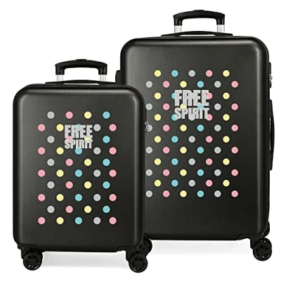 Movom Free Dots Black Luggage Set 55/68 cms Rigid ABS Combination lock 104L 4 double wheels Hand