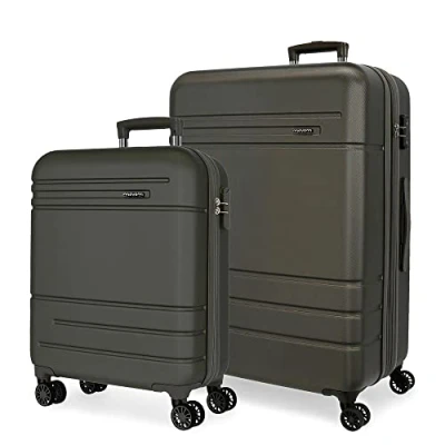Suitcase set consisting of a cabin suitcase 40 x 55 x 20 cm with 37L and 2.8 kg and a medium suitcase 48 x 68 x 27 cm 72L and 3.8 kg. Made of ABS, a stiff and lightweight material. Cabin trolley (55 cm): interior with two compartments and a zip pocket. Large suitcase (68 cm): inside with a zip compartment on one side and elastic straps on the other side Four multi-directional double wheels for comfortable moving, smooth rolling and effortless maneuvering. Side combination lock to increase the security of luggage. Medium size suitcase extends up to 5cm longer to expand capacity. Space-saving interlocking