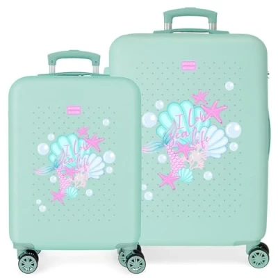 Movom I Love Sea Life Suitcase Set Blue 55/65 cm Rigid 5.6 kg Combination Lock Side ABS 91L Hand Luggage, Blue, One Size,