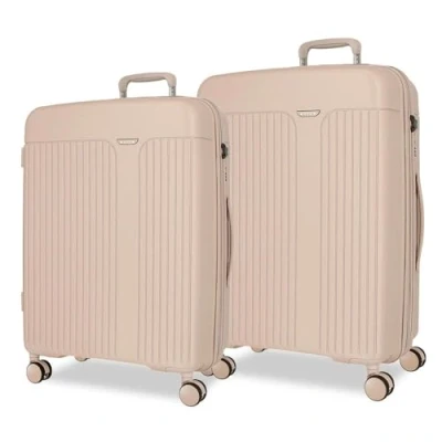 Suitcase set consisting of a medium suitcase of 48 x 68 x 27 cm with 72L and 3.8 kg, and a large suitcase of 53 x 78 x 31 cm of 108L and 4.8 kg. Made of polypropylene, a rigid and lightweight material. Practical interior with a compartment with a zip pocket on one side and elastic straps on the other. Four multi-directional swivel dual wheels for comfortable riding, smooth rolling and effortless maneuverability. Medium suitcase extends up to 5 cm more to expand its capacity. Save space by storing one inside the other.