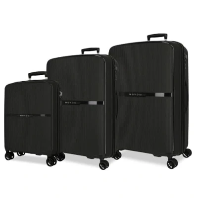 Movom Noon Luggage Set Black 56/66/76 cm Rigid 2.8 kg TSA Closure Polypropylene 219.5L Hand Luggage, Black/White, One Size, Suitcase