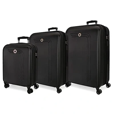 Movom Riga Black Luggage Set 55/70/80 cm Rigid ABS Combination lock 217L 4 Double Wheels Hand