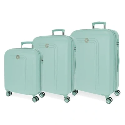 Suitcase set consisting of a cabin suitcase 40 x 55 x 20 cm with 37L and 2.5 kg, a medium suitcase of 49 x 70 x 27 cm of 72L and 3.9 kg, and a large suitcase of 56 x 80 x 29 cm of 1 08L & 1 0.25kg Made of ABS (acry A zipped compartment on one side and elastic straps on the other. Four multi-directional swivel wheels for easy transport. TSA lock for safe travel anywhere in the world and protect your personal belongings. Extendable up to 5 cm longer to expand its capacity