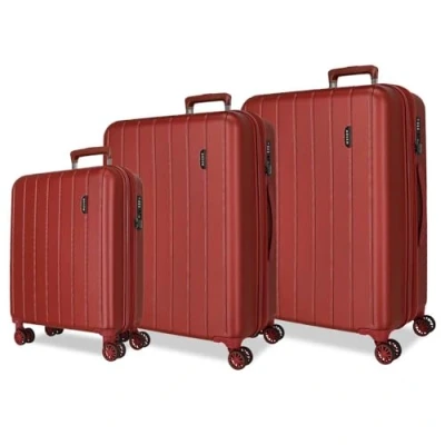 MOVOM Wood Luggage Set Red 55/65/75 cm Rigid ABS Closure TSA 217L 11.3 kg 4 Wheels Double Hand Luggage, red, One Size, Suitcase