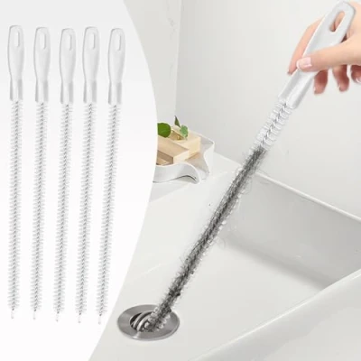 【Highly Efficient Cleaning 】This professional drain brush features sturdy nylon bristles, the aggressive 360° bristle design reaches all interior surfaces that effectively scrub away stubborn hair, soap scum, and debris from pipes. Steps to use the cleaning brush: 1, insert the cleaning brush into the drain; 2, twist the cleaning brush in order to entangle clogs such as hair; 3, pull out the cleaning brush. You can bend the sink unblocker to fit pipe curve before use. 【Reusable & Easy to Clean】Our drain unblocker tool are made of durable stainless steel wire and soft nylon bristles, flexible and bendable, resistant to rust, Upgraded bristles are not easily deformed and can be quickly restored to their original shape after use. Simply rinse them off after use, and they’re ready for the next cleaning session. Their reusable design reduces waste compared to disposable alternatives. 【Wide Application】Perfect for sinks, bathtubs, and even washing machine drains, these versatile brushes work on a variety of pipe materials, including PVC, metal, and plastic. Their compact size allows them to navigate bends and curves with ease, ensuring a thorough clean every time. Pls Note: Ensure that the diameter of the drain hole to be cleaned is a minimum of 0.7 cm and above to prevent the brush from being too large in diameter to be used. 【Environmental Protection】Regular use of these brushes not only prevents clogs but also helps to reduce the flavor caused by trapped debris and substances. Keep your drains fresh and hygienic with minimal effort, ensuring a cleaner, healthier home environment. 【Durable Cleaning Tool】You will get 5 pcs 45 cm(17.7inch)length and 1.5cm(0.6 inch) diameter pipe cleaning brush, suitable for you to clean the drain hole regularly to prevent clogging. The front end of the cleaning brush has a white plastic seal to prevent scratching your pipes.