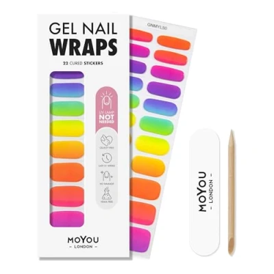 MOYOU LONDON Gel Nail Wraps 22 Pre Cured Stickers for Instant Manicure No Lamp Needed, Glossy & Chip Resistant Finish, Vegan Cruelty Free, Easy to Apply Remove Lasts Up 14 Days