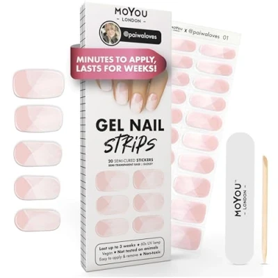 MOYOU LONDON Semi Cured Gel Nail Strips 20 Pcs. Wraps for Salon Quality Manicure Works with Any UV Lamp Easy to Apply, Trim, & Remove Stickers