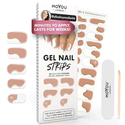 MOYOU LONDON Semi Cured Gel Nail Strips 20 Pcs. Wraps for Salon Quality Manicure Works with Any UV Lamp Easy to Apply, Trim, & Remove Stickers