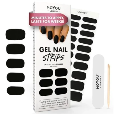 MOYOU LONDON Semi Cured Gel Nail Strips 20 Pcs. Wraps for Salon Quality Manicure Works with Any UV Lamp Easy to Apply, Trim, & Remove Stickers