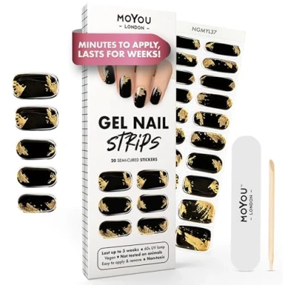 MOYOU LONDON Semi Cured Gel Nail Strips 20 Pcs. Wraps for Salon Quality Manicure Works with Any UV Lamp Easy to Apply, Trim, & Remove Stickers