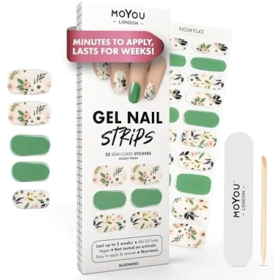 MOYOU LONDON Semi Cured Gel Nail Strips 20 Pcs. Wraps for Salon Quality Manicure Works with Any UV Lamp Easy to Apply, Trim, & Remove Stickers