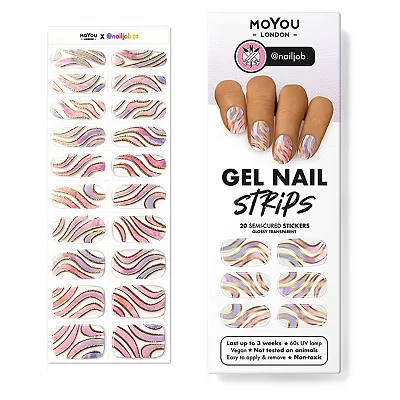 MOYOU LONDON Semi Cured Gel Nail Strips 20 Pcs. Wraps for Salon Quality Manicure Works with Any UV Lamp Easy to Apply, Trim, & Remove Stickers