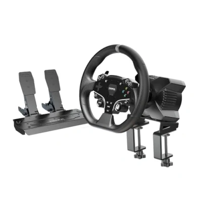 This Moza Racing R3 Bundle comes with everything you need to light up the track. You get a direct drive wheel base, SRP-Lite pedals and even a table clamp. And you get 22 buttons to suit your driving style and help you make heat-of-the-moment manoeuvres to snatch victory. Its Direct Drive base pumps out a punchy 3.9 Nm of torque. Add that to force feedback and you'll feel every acceleration and bump in the road like it's for real. Good to know - The aviation-grade aluminium alloy base makes the whole thing feel solid and sturdy- Get pinpoint accuracy in steering with the 15-bit ultra-high resolution motor encoder - The quick release system means you can easily switch wheels or add button boxes without faffing about- Its intelligent temperature control system gives it running tip-top when the race is on- The Flow Shift Lights can add cool visual effects to your setup - Use Moza Pit House to customise everything from the buttons to the throttle and brake, and there's even app control