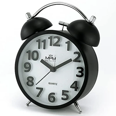 MPM Quality Design Metal Alarm Clock Classic ringing In trendy pastel colours. LED night light High quality metal case with glass cover 3D dial, analogue, has clearly readable hands and numerals. Button for LED backlight: hold the button and the time display is clearly visible at night Wake up even the biggest sleepers. Quiet movement with sweeping second hand for a perfect sleep. Extra loud alarm Modern alarm clock with Arabic numerals on the dial Perfect decoration for your home with precise time keeping: clock with hour, minute and second hands, manual adjustment, round quartz clock with analogue quartz time display Battery operated alarm clock: requires two AA batteries (not included)