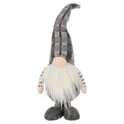 Mr Crimbo Christmas Gonk Figure Grey White Tartan Fabric Decoration 41cm