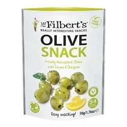 Mr Filberts Lemon & Oregano Green Olives 50g [Pack of 12]