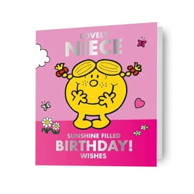 Celebrate your lovely niece's special day with a touch of whimsy and charm with our Mr Men & Little Miss 'Lovely Niece' Birthday Card. Featuring the iconic characters from the beloved Mr. Men and Little Miss series, this delightful card is sure to bring a smile to her face. With vibrant colours and playful illustrations, it captures the joy and fun of her birthday celebration. Inside, there's plenty of space to pen your heartfelt wishes, making it a truly personalised keepsake. Whether she's a Little Miss Sunshine or a Little Miss Chatterbox, this card is the perfect way to show your niece how much she means to you on her special day.