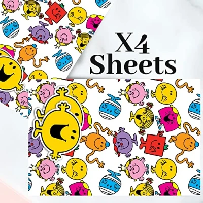 Mr Men & Little Miss Wrapping Paper 4 Sheets Tags Sheet Size 70cmx50cm Official Product Responsibly Resourced