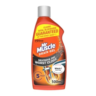 Mr Muscle Drain Unblocker, Sink & Cleaner, Fast Acting Heavy Duty Gel, Dissolves Clogs, Works 3x Better Than Bleach, Safe for All Pipes, 500ml