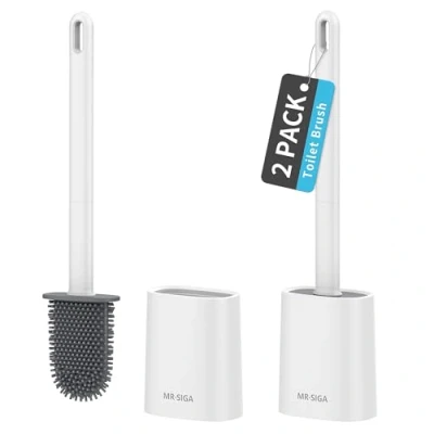MR.SIGA Toilet Brush and Holder Set, Wall Mounted Bowl Brush, Compact Scrub with for Bathroom, White, 2 Pack