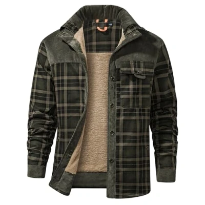 Mr.Stream Men's Padded Lumberjack Casual Long Sleeve Plaid Flannel Fur Lined Button Warm Shirt Sherp Jacket 3251 Dark Green L