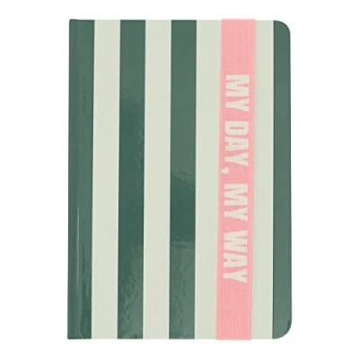 A5 size notebook, with hard cover and stitched binding with 180° opening. With 80 sheets of 90 grams paper, with striped pattern. With home page to point contact details. The message is presented on a vertical elastic band that functions as a closure of the notebook. It is FSC certified, which guarantees that it has been manufactured with paper from responsibly managed forests.