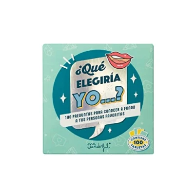 Card game for playing with friends or family. It consists of 100 cards of 8 x 8 cm, in each of them there is a different question that the player must ask the other participants to see if they know what he or she would choose in that situation. Cards made of 250g paper. Minimum 2 players. Original Mr.Wonderful product ideal for giving away