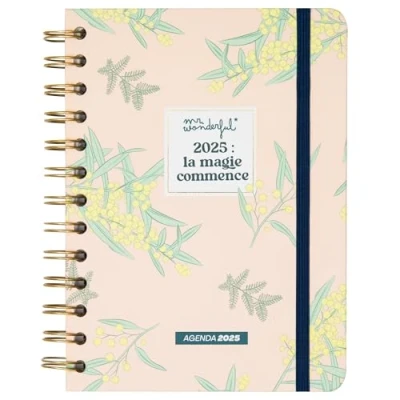 Mr. Office Style Small Diary Wonderful, a type of design a little more sober and discreet than our more classic style, so it will appeal to a slightly older audience. With weekly organization, it runs from January to December 2025. This diary contains: 160 pages of 100gsm paper with FSC certification / Daily motivational phrases / Tabbed dividers for each month / 8 sheets of stickers / 2025 and 2026 schedules and calendars An exclusive playlist / Pages to note contacts / Charts to monitor savings / Elastic band closure / Monthly planner at the beginning of each month / Super motivating monthly phrases
