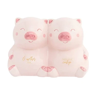 Piggy bank made in ceramics, instead of having the shape of the typical piggy bank piggy banks, in this case it is a couple of pigs, which brings originality to the product. The message in the piggy bank makes it ideal for both couples and any other type of relationship, whether it's friendship or even family. And, of course, it also fits for weddings. It has a cap on its bottom to access the money saved. 22.5 x 15.5 x 12.7 cm