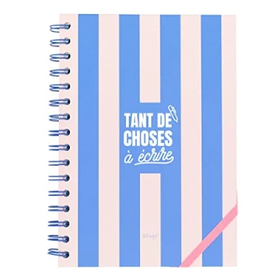 Pink A5 notebook with hardback cover and spiral binding. With 125 sheets of 90g lined paper. With a presentation page for writing down your details. It has an elastic band in the lower right corner that serves as a closure of the notebook. It has FSC certification, which ensures that its production has been carried out with paper from environmentally responsible forests. It includes a sheet of stickers.