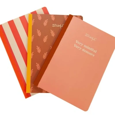 Mr Wonderful Set of 3 Notebooks 19 x 25 cm Squares, Ruled and Dots 80 Pages Each Stitched Binding Very Mindful, Demure
