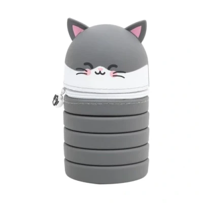 Pencil case made of silicone, extendable: when empty it is compressed, when it is full it lengthens and when you want to use it as a pencil box, it is left halfway. Its top is shaped like the head of our funny kitten. With zip closure. Directions: Stains can be removed by gently rubbing with a damp cloth.