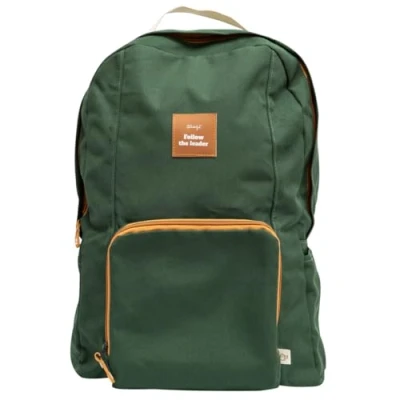 Folding backpack, ideal for excursions. When open, we find a pocket with zipper closure on its front, which is where the rest of the backpack will be stowed, folding over itself. With adjustable length handles. It has several details made in PU: the patch on which we find your funny message and the pulls of the zippers. Directions: Hand wash in cold water. Do not iron. Do not bleach. Do not tumble dry. Do not dry clean.