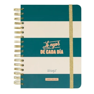 Wonder Style Diary by Mr. Wonderful, with daily organization, runs from September 2024 to the end of August 2025. 368 pages of 90g FSC certified paper//Motivational daily phrases//Tabbed dividers for each month//Inner cardboard pocket//Inner plastic ruler 8 sheets of stickers/Superbly entertaining games and extras//Schedules and calendars (Last Quarter 2024 and Full 2025 & 2026) Exclusive Playlist//Contacts Pages //Savings Charts //Elastic Closure //Monthly Planner at the beginning of each month////Sticky Note Pads with Shapes//Super Fun Monthly Phrases
