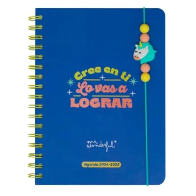 Wonder Style School Diary by Mr. Wonderful, with weekly organization, runs from September 2024 to the end of August 2025. 160 pages of 100g FSC certified paper. Motivational daily phrases. Tabbed dividers for each month. Internal cardboard pocket. Inner plastic ruler. 8 sheets of stickers. Fun games and extras Schedules and calendars (last quarter of 2024 and full 2025 and 2026). Exclusive Playlist. Pages for annotating contacts. Savings tables. Elastic band closure. Shaped sticky note pads Monthly planner at the beginning of each month. Super fun monthly quotes. Dimensions: 15.5 x 22 x 2 cm.