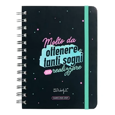 Mr. Wonderful Wonder Style Agenda, with weekly organization, VA DE September 2023 at the end of August 2024. This agenda contains: 160 pages, FSC certified 100 GR paper, daily motivational phrases, card separators for each month, inner cardboard pocket, Internal plastic rule, 8 sheets of stickers, fun games and extras, timetables and calendars (last quarter of 2023 and 2024 and 2025, complete), Monthly planner at the beginning of each month, superdives monthly phrases.
