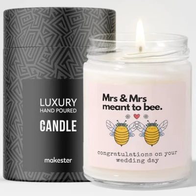 Mrs and Wedding Gifts Luxury Soy Wax Vanilla, Jasmine, Sugared Almond Lesbian Gift Makester