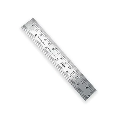 Manufactured from Stainless STEEL 15cm Ruler for unparalled accuracy. A very HANDY punched hanging hole, ideal for workshops. For EASE of measuring Metric or Imperial measurements, each side alternates the measure on the top row. Metal Rule, starts your measure immediately and with ease. Perfect for measuring against wood or masonry where an exact measure is required. SUITABLE Metal 15cm Rulers For Sewing and Cutting, Drawing , Craft Rulers, DIY, Architects or any other activity where an accurate straight edge measure is needed.
