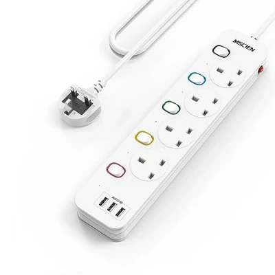 【Plug Extension Socket Lead】Extension leads with 4 way sockts and 3USB combined well, Max capacity up to 3250W, can safely charge up to 7 devices at the same time. 【Individual Switches】Each Outlets with Independent switch and indicator lamp structure for complete control with power, more energy saving. 【Pure Copper Cable 4M】Extension cord provides sufficient length without creating unnecessary clutter, but also make your desktop more tidy and orderly. 【Wall Mountable Extension Lead】This power strip have screw fixation design on both end, you can mount on a wall or fixed on the desk easily. 【Safety First】Mscien extension lead comes with a Standard UK plug with a 13A Fuse in plug head, meeting the criterion of BS1363/A. Child-protective safety door keep children safe from electric shock of careless touching. Built with 750°C flame-retardant material.