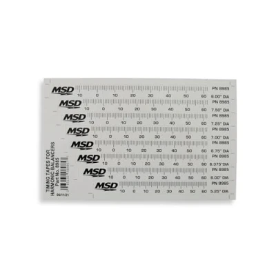 Comes with 8 different timing tapes Fits common balancers from 5.25 to 8 In. diameter Marked in 1 degree increments from 14 to 64 BTDC Helps set your timing where you want it