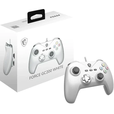 MSI FORCE GC200 WHITE Wired PC Gamepad Controller Hall Effect Triggers, Advanced Analog Thumbsticks, Dual Vibration Motors, USB 3.0