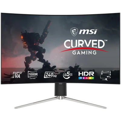 Overtake the competition with this MSI gaming monitor. The Rapid VA panel has a wide colour gamut and sharp contrast. That means your games, shows and films will always look great. With 0.5 ms response time and AMD FreeSync, you can expect crisp picture without screen tearing or blurring. And the 240 Hz refresh rate gives you super-smooth gameplay, so you'll have the upper hand in fast-paced titles like CS:GO or Valorant. Good to know - If open-world titles are more your thing, the Quad HD resolution makes those vast landscapes richly detailed - Curved at 1000R, this monitor will pull you right into your games- It's VESA DisplayHDR 400 certified, so your games will have more contrast and crisper colours - AI Vision brings out details in dark spots, so you'll always know if there's something lurking in the shadows- The smart crosshair won't let an enemy escape your sight - There's a USB Type-C port supporting 65 W charging, so you can charge up your phone while gaming - Find the sweet spot for your eyes - you can adjust the tilt and height to get the viewing angle right
