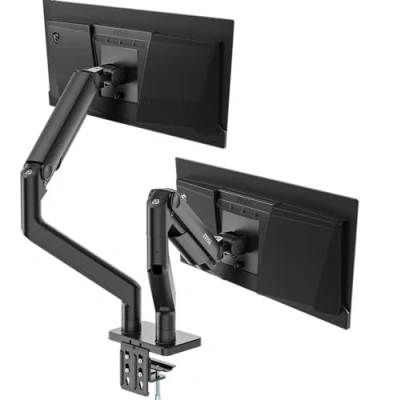 MSI MAG MT201D Premium Heavy Duty Dual Monitor Stand Arms, 17 45" Support, VESA Compatible, Adjustable Spring Mount, 44 lbs per Screen, Clamp & Grommet, Quick Release Plate Black