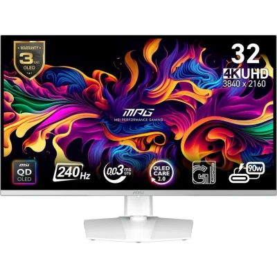 MSI MPG 321URXW QD OLED 31.5 Inch 4K UHD Gaming Monitor 3840 x 2160 Quantum Dot Panel, 240Hz / 0.03ms, 99% DCI P3, ΔE≤2, DisplayHDR True Black 400, KVM, RGB DP 1.4a, HDMI 2.1, USB Type C