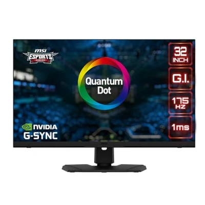 QUANTUM DOT COLOUR INTENSITY - The Optix MPG321QRF-QD supports ultra-realistic game settings with a superb gamut of 1.07 billion colours (144 percent sRGB, 95 percent DCI-P3), VESA DisplayHDR 600 brightness (400 nits base, 600 nits peak) and dynamic contrast 32” WQHD, 175HZ RAPID IPS - The quad high definition 2560 x 1440 Rapid IPS panel (16:9 aspect ratio) features a high 175 Hz refresh rate (G-SYNC Compatible) for smooth aiming/movement tracking; A very low 1ms GtG response time is ideal for esports events THE ULTIMATE GAMING EXPERIENCE - MSI Gaming Intelligence offers a competitive edge (Smart Crosshair, Optix Scope) and AI supported software (Smart Brightness, Sound Tune); KVM technology enables 2 systems to connect simultaneously to one monitor SMART DESIGN and UTILITIES - The monitor frame boasts a narrow bezel, Mystic Light RGB ambient illumination, built-in cable bungee, and a 3-way adjustable stand; True Colour Sync and Gaming Intelligence provide easy multi-display and -controller functionality VERSATILE CONNECTIVITY - Video interface options include DisplayPort 1.4a and USB Type-C (WQHD/175Hz) as well as HDMI 2.0b ports (WQHD/144Hz) with CEC funtionality; Other ports include USB 2.0 Type-A and -B, audio combo jack and 5-way joystick navigator