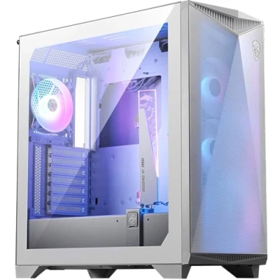 E-ATX CASE WITH MYSTIC LIGHT - The MPG GUNGNIR 300R AIRFLOW WHITE is a mid-tower PC case designed for E-ATX, ATX, micro-ATX & mini-ITX motherboards; The versatile 505 x 235 x 510mm chassis features pre-installed Mystic Light ARGB lighting & controller AMAZING AIRFLOW - Full-length mesh front & top panels support up to 3 x 120mm fans or a 360mm radiator each, the rear panel 1 x 120mm fan/radiator, and internal brackets for up to 3 fans; Includes 4 x 120mm PWM ARGB fans & 6-fan hub INTEGRATED GRAPHICS CARD SUPPORT - A 4-way adjustable ARGB stand supports even the heaviest GPUs (max 360mm); The rear 7-slot PCIe bracket can be swapped for a vertical 4-slot PCIe bracket (riser cable & fans NOT included) SMART DETAILS - The 4mm tempered- glass panel is offset slightly to improve airflow & supports tall CPU coolers (max 175mm); The PSU bay (max 220mm) features top/side/bottom inlets & a sliding 3.5" HDD cage; Includes front/top/side/bottom dust filters INSTA-LIGHT I/O PANEL - The I/O panel at the front of the top panel includes power & reset buttons, mic/audio jacks, a USB 3.2 Gen 2x2 Type-C (20Gbps) & 2 x USB 3.2 Gen 1 Type-A (5Gbps) ports; The LED switch runs through the ARGB hub for manual control Product Description