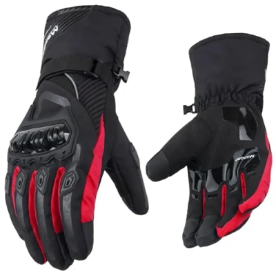 Msport Winter Motorcycle Gloves 100% Waterproof Thermal Touchscreen Protective for Ski, Snowboard & Scooter Red XXL