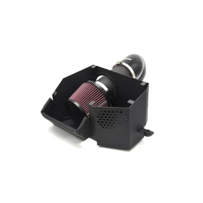 Improved throttle response Black powdercoated heatshield Easy to maintain dry pleated filter Cold air straight to the turbo Direct Fit Application