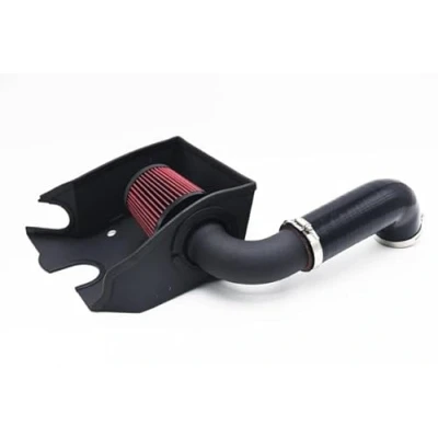 Improved throttle response Black powdercoated heatshield Easy to maintain dry pleated filter Cold air straight to the turbo Direct Fit Application