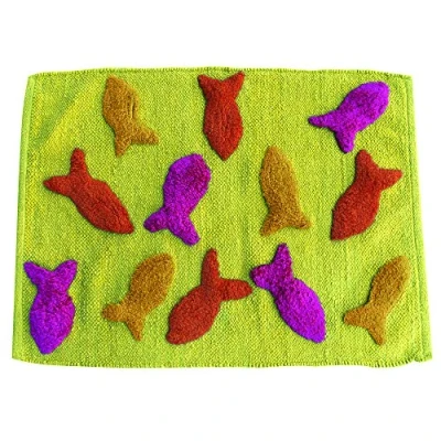 MSV Bath mat Round Patterns of Cotton 60x40cm, Yellow/Multi Colour, 60 x 40 cm